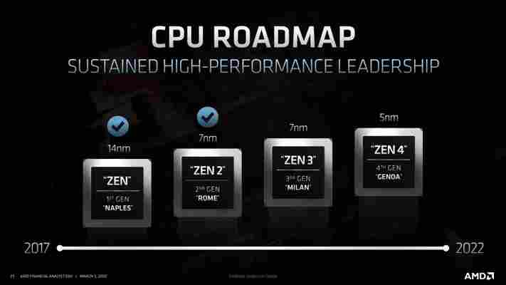 AMD ukázalo analytikům a veřejnosti aktualizovanou roadmapu procesorových architektur, v níž je nově (poprvé) jádro Zen 4 následující hned po Zenu 3. Domněnky, že by třeba mohlo být přeskočeno kvůli negativním konotacím čísla v Asii, se tedy nenaplnily. K těmto dohadům asi vedlo to, že zprávy o architektuře „Zen 5“ se objevily velmi brzo a tehdy ještě nebylo známo, že vývoj CPU architektur AMD zřejmě zrychlilo, jak se ukazuje na krátkém odstupu mezi loňským Zenem 2 a Zenem 3, jenž vyjde už letos. Do té doby jsme byli zvyklí na dvouleté rozestupy.