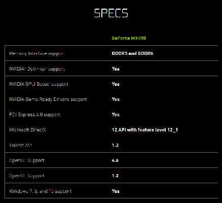 Nvidia to neuvádí, ale podle různých zdrojů by GeForce MX450 údajně měla mít pořád architekturu Turing – není to tedy nějaký převlečený první Ampere. Dokonce se mluví o tom, že by mělo jít o GPU TU117, které už Nvidia dávno používá (jen s PCIe 3.0) v grafikách GTX 1650.